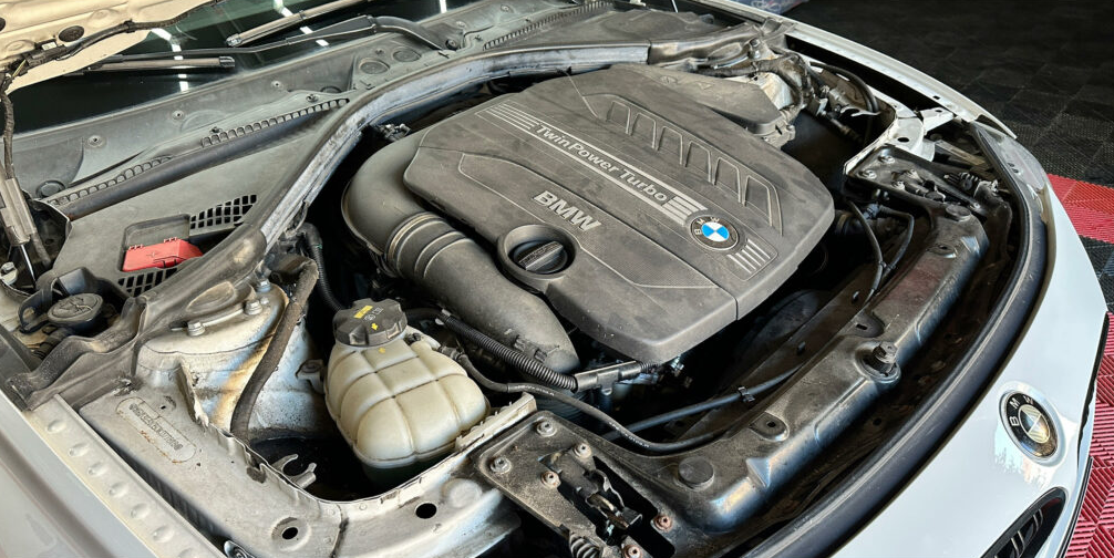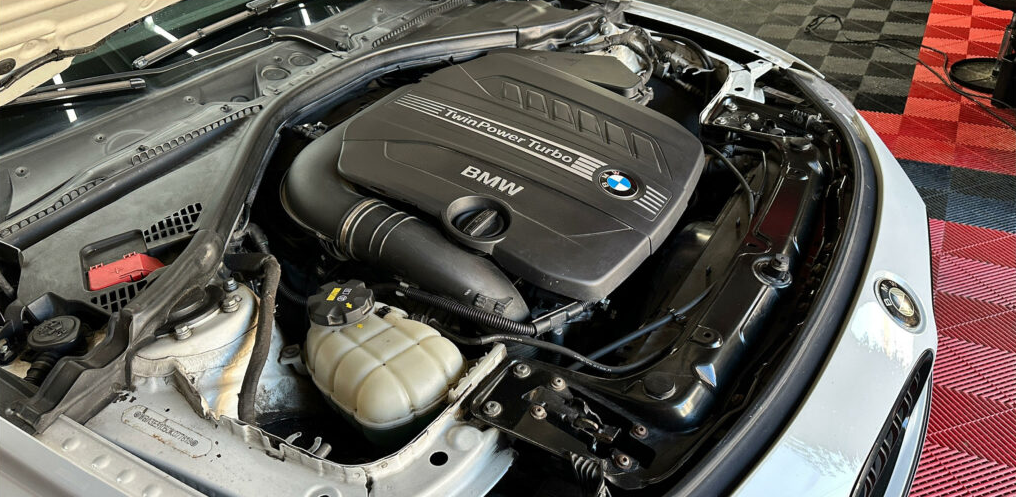 Nettoyage professionnel du compartiment moteur pour éliminer la saleté et les résidus accumulés.
